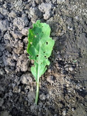 Question: What does Horton Road do to control flea beetle? Answer: Horton chooses to focuses on maintaining a high level of soil health and the best field germination possible. Flea beetles tend to be less prevalent in high density plantings compared sparse or stressed stands.