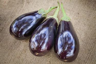 Round, black globe shaped eggplant absorbs the flavors of whatever it’s cooked with. Great grilled, in Baba Ganouj or eggplant parmesan.