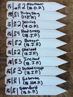 Once seeded they are tucked in with a tad bit more of the mix and labeled, then they go right into the green house to germinate. After germination they go to the field to be planted out and grow into the vegetables you know and love to eat! It is a job that requires much attention, as each seed is very important, but for me it is also a wonderful way to relax. To be at the very beginning of the process of vegetable production and be able to see it all of the way through is a tremendous feeling.