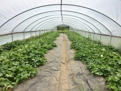 This is when we focus on many of the plants that are not under such a time requirement of the sun. This includes carrots (which would usually be next), radishes, green onions, beets, zucchini, green beans, celery, and cucumbers, among others. Cucumbers have been one of my favorite to harvest recently. They are grown in two of the five greenhouses and have just begun to be included in our morning harvest as of two weeks ago. These are a sort of a jungle to navigate through in order to find mature cucumbers, which are very very close in color to the large leaves they hide behind. This lends the harvest to being sort of like a puzzle, or an I-spy. We scan the plants in this manner from one end of the greenhouse to the other, with plastic buckets that we place the mature and clipped cucumbers into. We usually fill about ten or so of these buckets each harvest. I love doing this barefoot, since we need to find places to step amongst the plants that don’t crush any leaves or flowers of future fruits. This allows me to find good placement and it also feels great to have the soil in between my toes early in the morning.